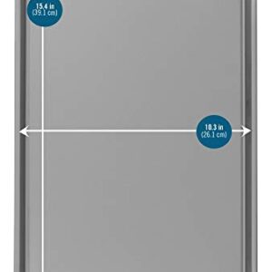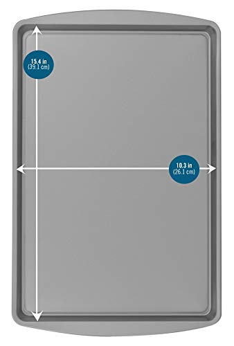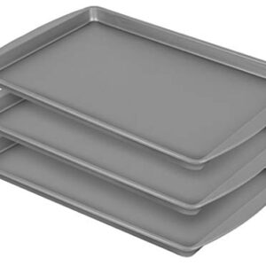 Details: BakerEze Set of Three Nonstick Medium Cookie Pans will be your go-to pan set for endless uses. This versatile pan set can be used for a variety of baking function from baking batches of cookies to making sheet pan dinners. Each pan in the collection features a proprietary DuraGlide PLUS reinforced nonstick coating delivering effortless food release making cleanup quick and easy. The durable steel construction heats evenly with no hot spots so cookies bake to a golden finish producing the best baking results. BakerEze Set of Three Nonstick Medium Cookie Pans is made in the USA, made without PFOA and is backed by a 5-year limited warranty. For best results, hand wash and towel dry recommended. Internal dimensions are 15.4-inch x 10.3-inch x 0.7-inch. External dimensions are 16.9-inch x 10.7-inch x 0.8-inch.