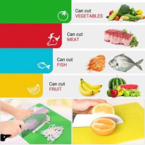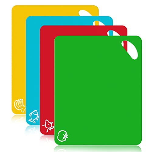 - COLOR-CODED CUTTING BOARD SET — A Set of 4 Color plastic cutting boards is suitable for different food. These cutting mats are helpful to keep the food’s taste original and avoid mixing food flavours when you are cutting food. Give your family healthier meals every day.